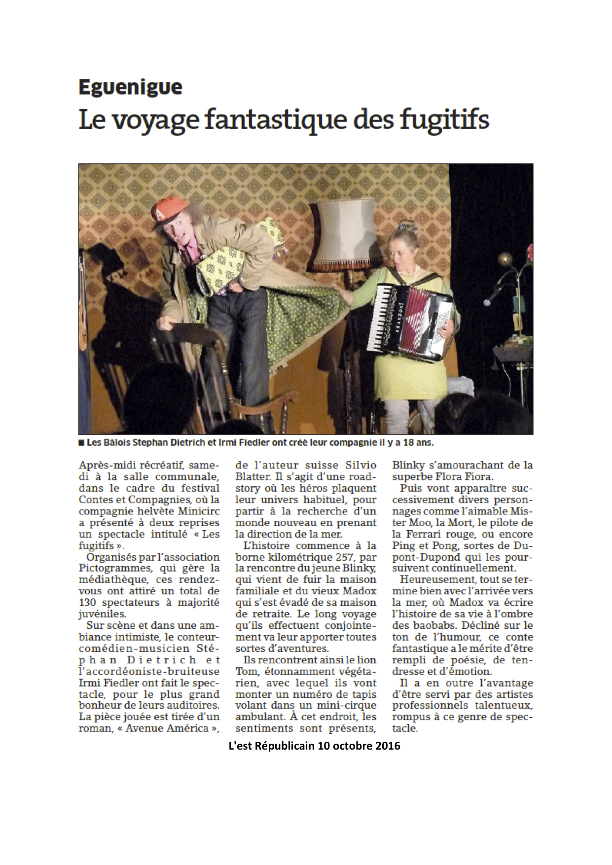 Est Républicain (édition de Belfort)10.10.2016: "Le voyage fantastique des fugitifs" |