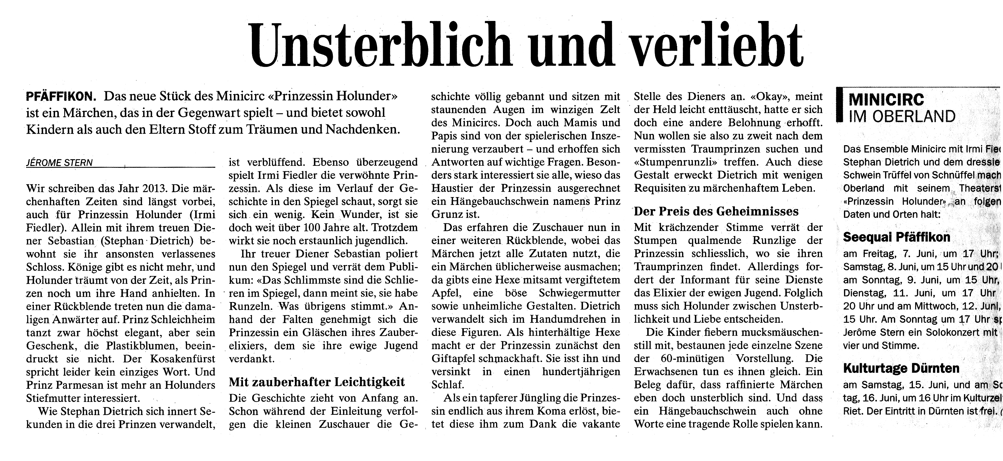Zürcher Oberländer, 05.06.2013: "Unsterblich und verliebt"