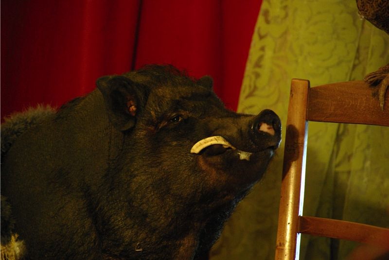 "Rosita & Risotto" est une histoire comme Roméo et Juliette. Une histoire d’amour intemporelle, immortalisée par William Shakespeare et racontée par Irmi Fiedler du MiNiCiRC, qui met en scène cette histoire de manière libre avec le cochon savant « Truffel von Schnuffel » et la poule « Mademoiselle Poulette ». |